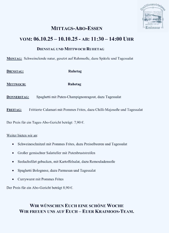 Nach gutbürgerlicher Art gibt es in Kraimoos ordentliche Portionen zu vernünftigen Preisen und obendrauf noch die gemütliche Atmosphäre.